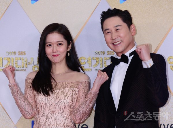 배우 장나라(왼쪽)와 개그맨 신동엽이 31일 서울 마포구 SBS프리즘타워에서 열린 ‘2019 SBS 연기대상’ 포토월에서 포즈를 취하고 있다.