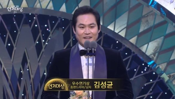 [2019 SBS 연기대상] 김성균 우수연기상…“단추 떨어졌다” 엉뚱 소감