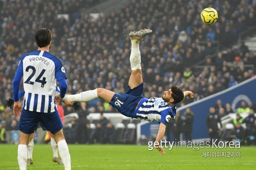 계속해 첼시를 압박하던 브라이튼은 후반 39분 동점을 만들었다. 코너킥 상황에서 자한바크시가 오버헤드킥으로 환상적인 동점골을 터트렸다.