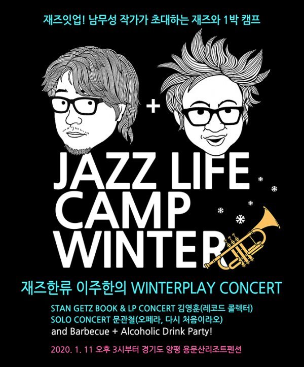 이번 겨울캠프는 2020년 새해 1월 11일(토)에 양평 ‘용문산리조트펜션‘에서 펼쳐지며 추위를 피해 산장 실내에서 공연과 북 콘서트가 진행된다.