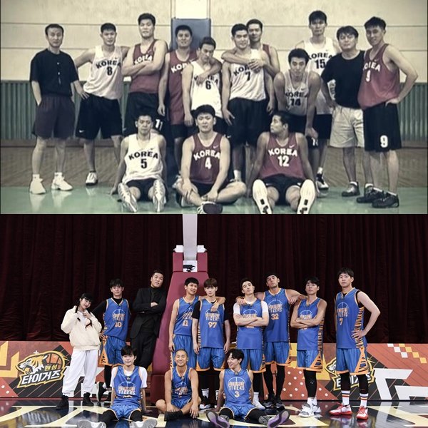 이에 ‘핸섬타이거즈’ 선수단은 서장훈의 ‘인생 최고의 기록’이라 할 만한 당시의 사진을 18년만에 그대로 재현했다. 서장훈은 2002년의 모습처럼 농구 골대에 기댔고, 배우 이상윤과 서지석, 이태선, 차은우 등도 2002년 당시 대표팀 선수들을 표현해 흥미를 자아낸다.