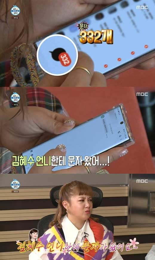 이어 휴대폰으로 밀린 문자들을 확인하고 있던 박나래는 김혜수로부터 축하 문자가 왔음을 알게 됐다. 박나래는 “김혜수 언니한테 문자가 왔다. 가끔씩 같이 밥을 먹는다”라고 친분을 전했다.
