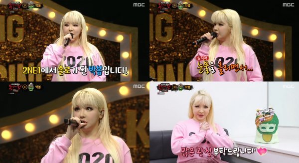박봄은 5일 방송된 MBC \'복면가왕\'에서 \'지금 감\'이라는 이름으로 출연했다. 2라운드에 이어 3라운드까지 열정적인 무대를 선보인 뒤 복면을 벗고 자신의 정체를 공개했다.