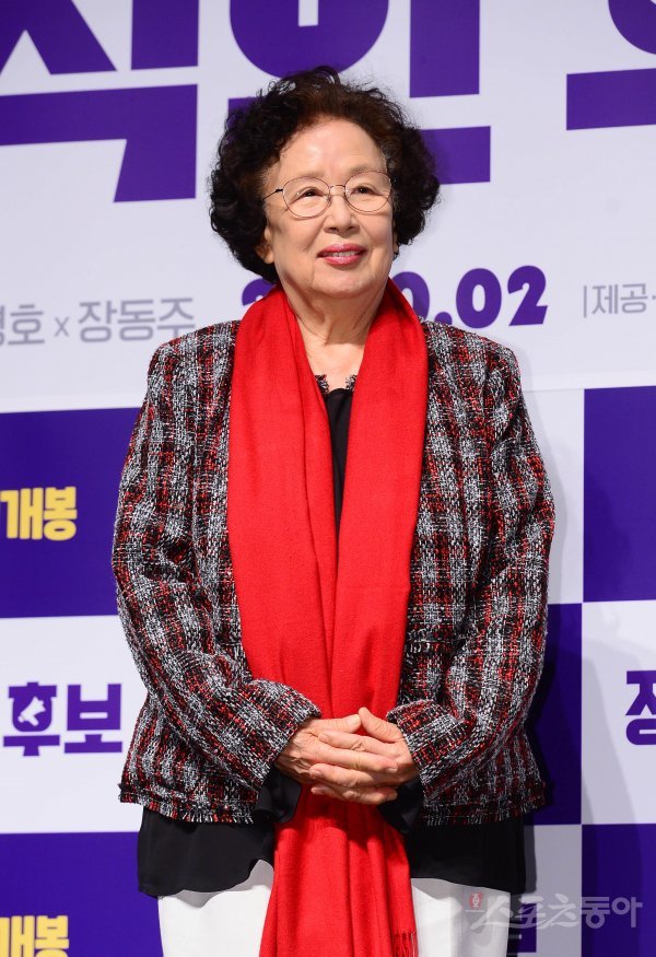 배우 나문희가 6일 서울 강남구 CGV 압구정점에서 열린 영화 ‘정직한 후보’ 제작보고회에 참석해 포즈를 취하고 있다.