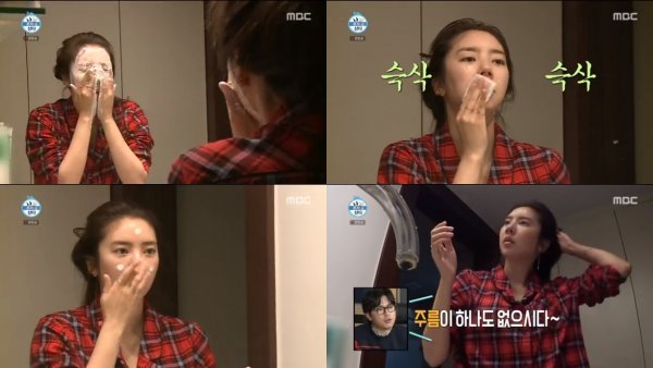 이어 피부 관리 비법도 공개했다. 클렌징 폼으로 깨끗하게 세안을 마친 뒤 토너, 앰플, 크림 등을 순서로 발랐다. 37세처럼 보이지 않는 동안 피부에 이시언은 “주름이 하나도 없다”고 감탄했다. 반면 다소 복잡한 스킨케어 단계에 박나래, 임수향은 “(비결이) 더덕이 문제가 아니다. 화장품이다”라고 말해 웃음을 자아냈다.