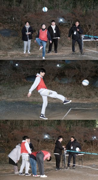 이런 가운데 족구 대결을 미리 엿볼 수 있는 멤버들의 모습이 포착돼 눈길을 끈다. 공개된 사진에는 비장한 표정으로 공에 온 신경을 집중하고 있는 김선호와 딘딘 등의 모습이 담겨 시선을 사로잡는다.
