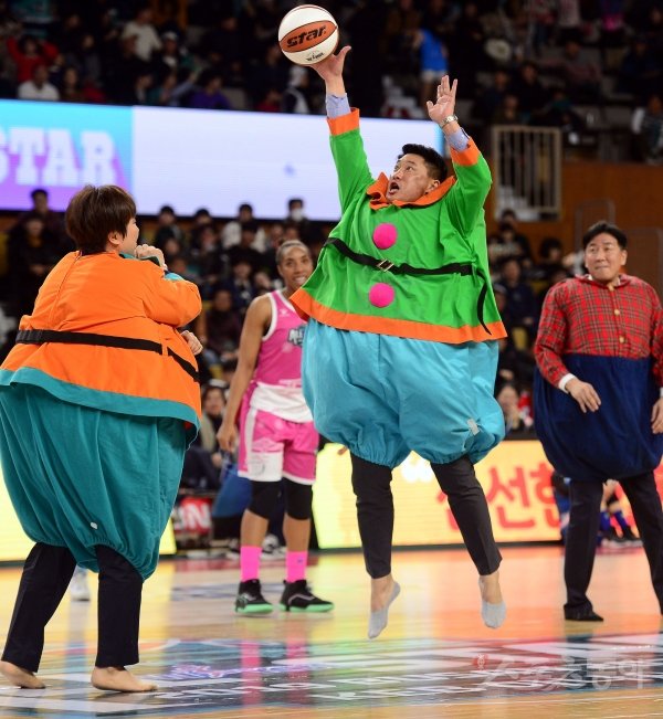 12일 부산 스포원파크 BNK센터에서 열린 ‘하나원큐 2019-2020 여자프로농구’ 올스타전 경기에서 감독들이 이벤트 게임을 선보이고 있다.
