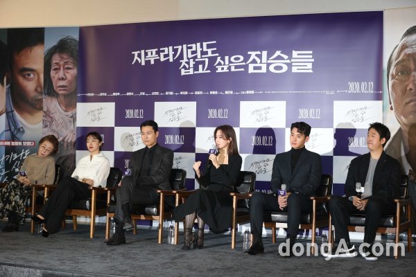 13일 오전 서울 성동구 메가박스 성수점에서 열린 영화 \'지푸라기라도 잡고 싶은 짐승들\' 제작보고회에서 출연진이 기자간담회를 갖고 있다.