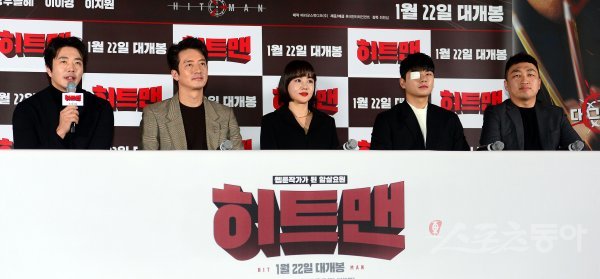 배우 권상우가 14일 서울 광진구 자양동 롯데시네마 건대입구에서 진행된 영화 ‘히트맨’ 언론시사회에 참석해 취재진의 질문에 대답하고 있다.