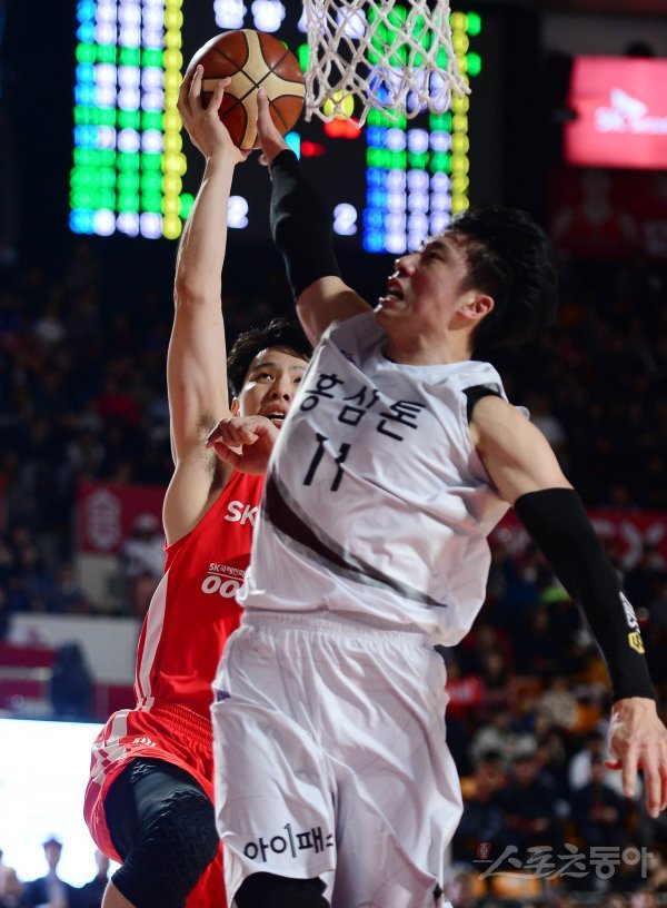 27일 서울 송파구 잠실학생체육관에서 열린 ‘2019-2020 현대모비스 프로농구’ 서울 SK와 안양 KGC의 경기에서 SK 최부경이 레이업슛을 쏘고 있다.
