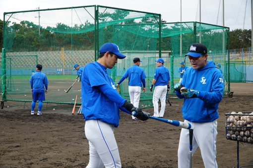 오키나와 스프링캠프에서 삼성 구자욱(왼쪽)이 타격 훈련을 하고 있는 모습. 사진제공|삼성 라이온즈