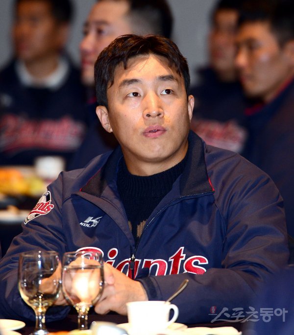 롯데 자이언츠 시무식과 신임대표 취임식이 28일 부산 롯데호텔에서 선수단 및 임직원 일동이 참석한 가운데 열렸다. 손아섭이 취임사를 듣고 있다.