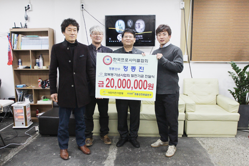 그랑프리 경륜 4연패라는 대기록을 세운 정종진(20기·33세·SS·김포)은 16일과 21일 광명시장실과 엄복동 기념사업회 사무실을 방문해 각각 1000만 원과 2000만 원의 기부금을 전달했다. 기부금은 광명 지역 저소득층 가정 지원과 자전거 꿈나무 육성기금으로 사용될 예정이다. 정종진은 “이번 기부를 통해 어려운 이웃들이 조금이나마 따뜻한 겨울을 지내고 자전거 꿈나무들이 운동하는 데 도움이 되길 바란다”고 밝혔다. 한편 정종진이 소속된 김포 팀도 ‘2019 경륜선수 종합 표창식’에서 받은 훈련지부상 상금 200만 원을 어려운 이웃을 위해 써 달라며 광명 4동 사무소를 찾아 기부했다.