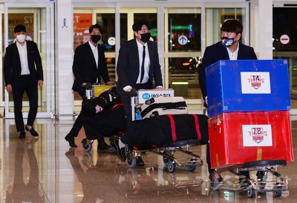프로야구 KIA가 30일 인천국제공항 2터미널을 통해 미국 플로리다로 전지훈련을 떠났다. KIA 선수들이 출국장으로 향하고 있다.