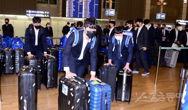 프로야구 삼성이 30일 인천국제공항을 통해 일본 오키나와로 전지훈련을 떠났다. 삼성 선수들이 출국을 준비하고 있다.