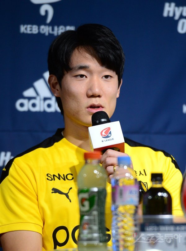 2020 U-23 챔피언십 우승 후 K리그에 복귀하는 김진야(서울), 조규성(전북), 오세훈(상주), 이유현(전남), 원두재(울산)가 30일 서울 종로구 신문로 축구회관에서 열린 K리그 복귀 미디어데이에서 이유현(전남)이 취재진의 질문에 대답하고 있다.