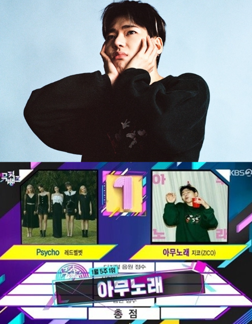지코는 지난 31일 방송된 KBS2 '뮤직뱅크'에서 신곡 '아무노래'로 출연 없이 1위를 차지하는 저력을 과시했다.