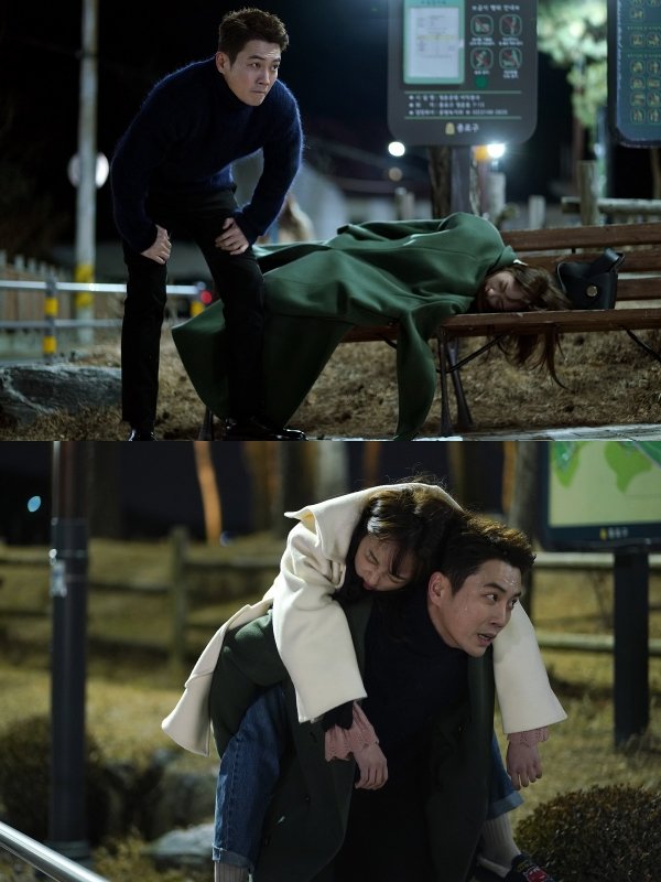 김보라를 업고 있는 주상욱의 모습이 포착돼 궁금증을 자극한다.