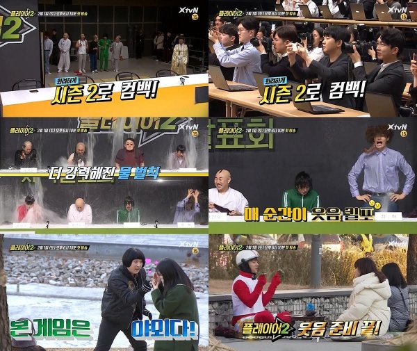 1일 '플레이어2'는 제작발표회 특집으로 꾸려지며 첫 방송부터 시청자들의 이목을 사로잡는다. 최근 공개된 예고 영상 속 멤버들은 화려하게 꾸며진 무대에서 제작발표회를 진행한다. 수많은 기자들의 플레시 세례가 쏟아지는 가운데 어찌된 일인지 끊임없이 물벼락을 맞는 멤버들의 모습이 웃음을 자아낸다. 지난 시즌에 비해 더욱 강력해진 물 벌칙이 시청자들의 웃음을 책임질 전망이다.