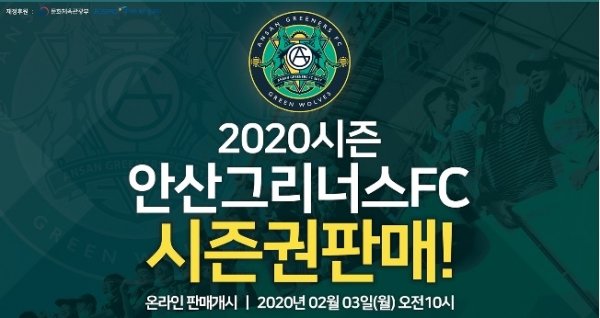 프로축구 K리그2 안산 그리너스FC(구단주 윤화섭)가 3일 오전 10시부터 티켓링크를 통해 2020 시즌권 온라인 판매를 시작했다.