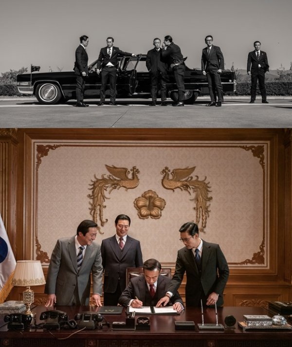 카리스마 있는 박통의 모습과 그에게 충성하는 권력 2인자들의 모습이 포착됐다. 청와대 대통령 집무실 셋트에서 촬영된 네 사람의 모습은 한결 분위기가 다르다. 박통을 중심으로 모인 캐릭터들의 표정이 영화에서와는 또 다른 느낌을 전달한다. 이외 영화 속 인물들의 다양한 표정을 담은 각종 미공개 스틸들은 쇼박스 SNS에서 확인할 수 있다.