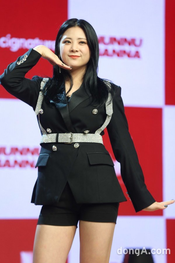 그룹 시그니처의 선이 4일 오후 서울 강남구 일지아트홀에서 열린 데뷔 리드 싱글 A \'눈누난나\' 발매 기념 미디어 쇼케이스에 참석해 포토타임을 하고 있다.