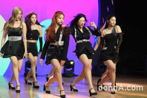 그룹 시그니처가 4일 오후 서울 강남구 일지아트홀에서 열린 데뷔 리드 싱글 A \'눈누난나\' 발매 기념 미디어 쇼케이스에서 새로운 무대를 선보이고 있다.