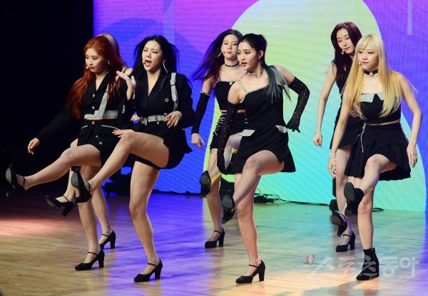 그룹 시그니처가 4일 서울 강남구 청담동 일지아트홀에서 열린 데뷔 리드 싱글 A ‘눈누난나(NUN NU NAN NA)’ 발매 기념 쇼케이스에 참석해 공연을 펼치고 있다.