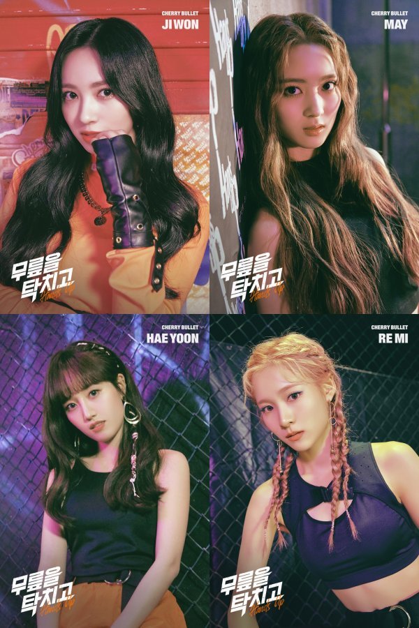 체리블렛의 소속사 FNC엔터테인먼트는 지난 4일 공식 SNS 채널을 통해 체리블렛 첫 번째 디지털 싱글 \'무릎을 탁 치고 (Hands Up)\'의 지원•메이•해윤•레미 개인 콘셉트 포토를 공개했다.