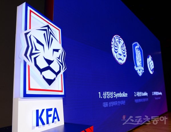 5일 서울 종로구 KT스퀘어에서 열린 KFA 브랜드 아이덴티티 런칭 행사에서 대한축구협회 새로운 엠블럼이 공개됐다.
