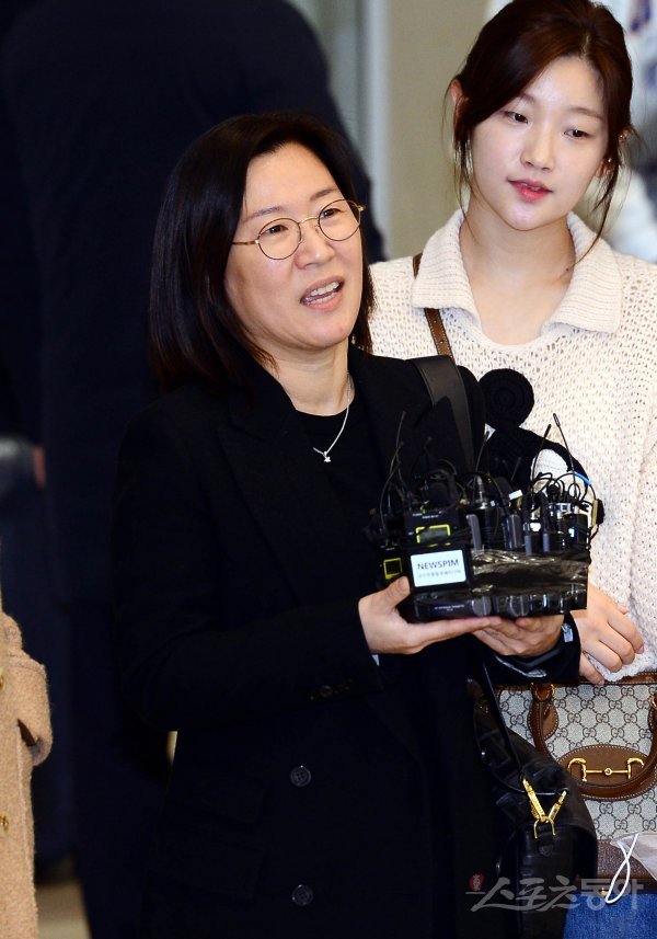영화 ‘기생충’ 출연 배우들과 제작진이 12일 인천국제공항 제2터미널을 통해 미국 아카데미 영화 시상식을 마치고 귀국했다. 제작사 곽신애 대표가 소감을 말하고 있다.