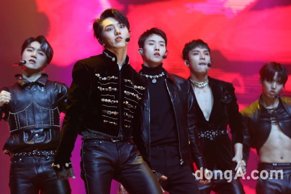 그룹 펜타곤이12일 오후 서울 광진구 예스24 라이브홀에서 열린 첫 정규앨범 \'UNIVERSE : THE BLACK HALL(유니버스 : 더 블랙 홀) 발매 쇼케이스에서 새로운 무대를 선보이고 있다.