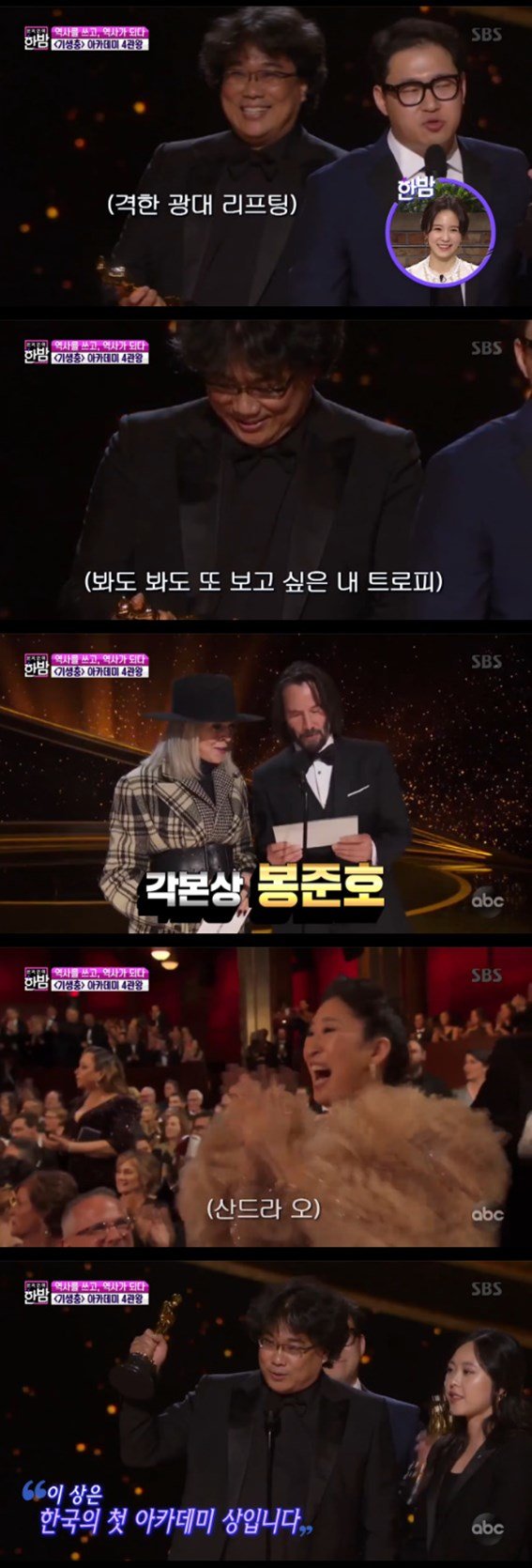 12일 방송된 SBS ‘본격 연예, 한밤’에서는 제92회 아카데미 시상식에서 작품상, 감독상, 각본상, 국제 장편 영화상을 수상한 ‘기생충’의 영광스러운 현장을 공개했다.