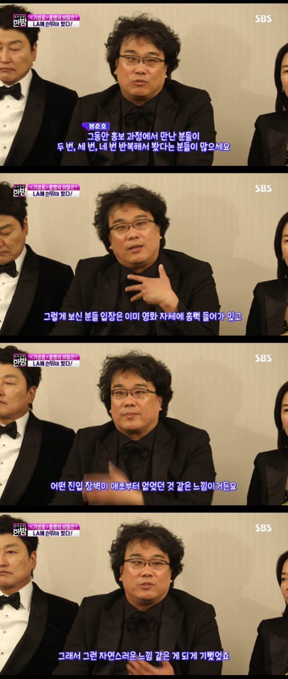 이날 방송에서는 아카데미 레드카펫에서 인터뷰를 하고 있는 봉준호의 모습이 전파를 탔다. 아카데미 취재를 나온 취재진들은 봉준호에게 여러 질문을 했다.