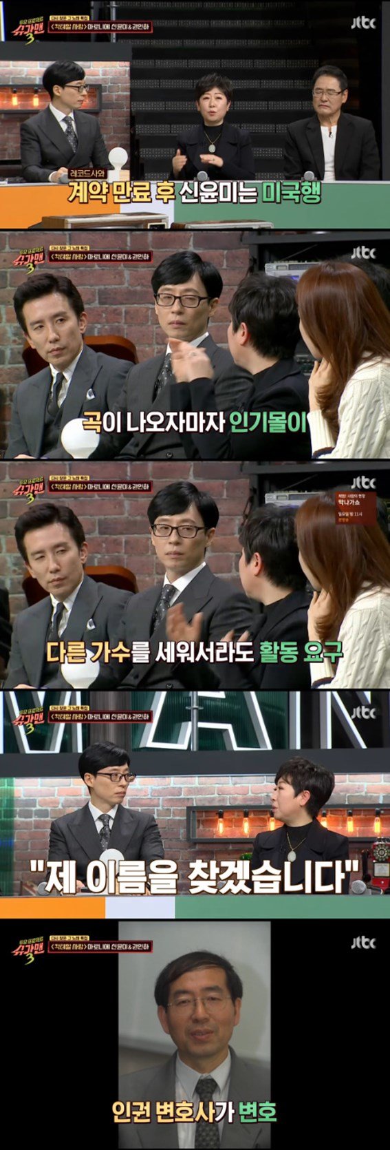 하지만 신윤미는 방송 활동을 하지 않았다. 그는 “레코드사랑 계약이 끝나고 미국으로 갔다. 이후 인기가 생겼다. 방송국이나 기획사 측은 가수가 없는 어떡하나 해서 다른 가수를 세우자고 하자고 했다더라. 하다못해 CD에는 내 이름이 들어가 있나. 그래서 법정 소송을 하게 됐다”라고 설명했다.
