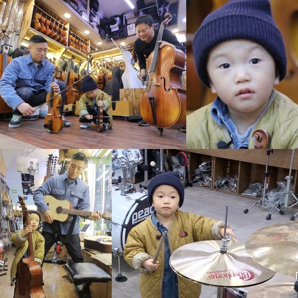 공개된 사진에는 다양한 악기를 연주하는 하오가 담겨 있다. 하오에게 딱 맞는 아기 사이즈의 바이올린을 연주하는 것부터 자기 키보다 더 큰 기타를 들고 있는 모습이 귀여워 웃음을 자아낸다. 특히 개리 아빠와 바이올린 가게 사장님까지 합세한 하오 3중주는 어떤 사운드를 만들어낼지 궁금해진다.