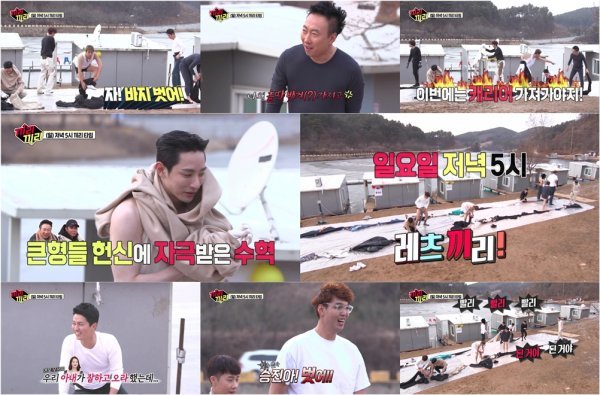 알고 보니 끼리들은 어느 팀이 더 길게 옷을 잇는지 대결하는 ‘길게 길게 이어라’ 게임 중인 상황. 끼리들은 캐리어가 몇 개 남지 않은 만큼 물불 가리지 않고 옷을 벗었다고 전해져 웃음을 자아낸다.