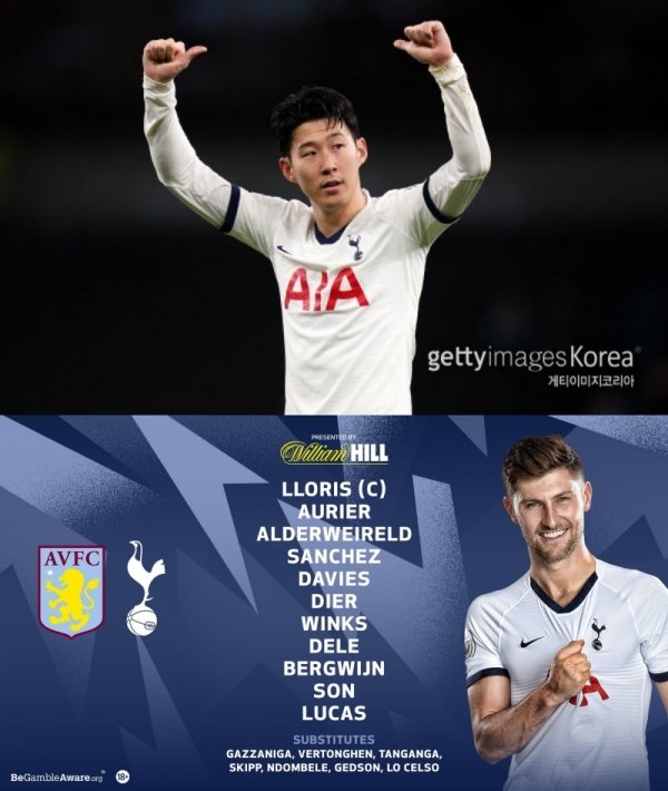이날 토트넘은 요리스 골키퍼가 골문을 지키고 오리에, 안더베이럴트, 산체스, 데이비스, 다이어, 윙크스, 델레 알리, 베르흐바인, 손흥민, 루카스 모우라의 라인업으로 나선다.