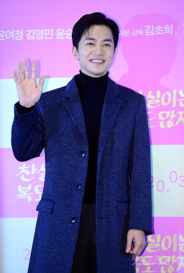 17일 서울 용산구 CGV 용산아이파크몰에서 열린 영화 ‘찬실이는 복도 많지’ 언론 시사회에 참석한 김영민이 카메라를 향해 포즈를 취하고 있다.