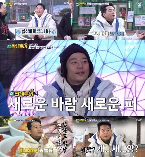 어제(17일) 방송된 tvN ‘더 짠내투어’에서 김준호는 고정 출연을 확정 짓고 첫 투어의 행선지인 강화도로 향했다. 오프닝에서 김준호는 “새로운 바람, 새로운 피가 되겠다”고 출사표를 밝히며 새 고정 멤버가 된 기쁨을 만끽했다. 또한 방송국을 향해 감사의 큰절을 올려 모두를 폭소케 했다.