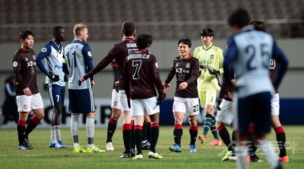 18일 서울월드컵경기장에서 열린 2020 ACL 조별리그 E조 1차전 FC서울과 멜버른 빅토리(호주) 경기에서 1-0 승리를 거둔 서울 선수들이 기뻐하고 있다.