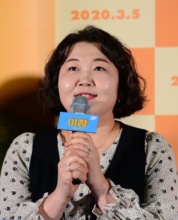 배우 이선희가 20일 서울 광진구 롯데시네마 건대입구에서 열린 영화 ‘이장’ 언론시사회에서 참석해 취재진의 질문에 대답하고 있다.