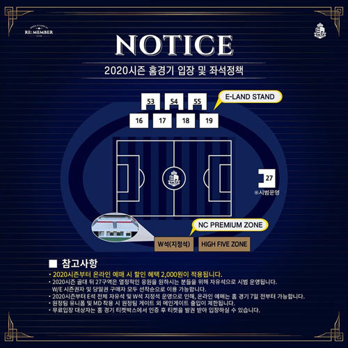 경기장 좌석 가운데 VIP 및 패밀리석으로 운영된 W석을 ‘NC 프리미엄 존’으로 신설해 운영하기로 했다. 탁 트인 시야와 선수들의 입장을 조명할 수 있는 이 좌석은 1만5000원에 판매된다. 테이블 석은 지난 시즌에 비해 5000원 할인된 가격으로 이용이 가능하다.