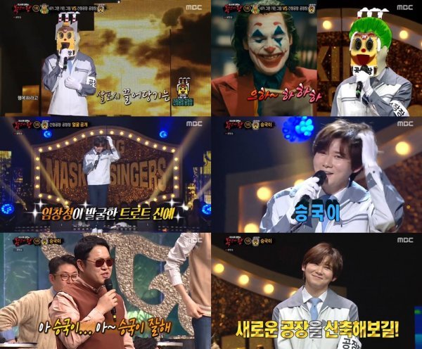 승국이는 23일 오후 방송된 MBC ‘복면가왕’에 간장공장 공장장으로 등장해 노을의 ‘붙잡고도’로 섬세한 감성과 남다른 음색을 뽐내는가 하면, 조커 웃음소리 성대모사를 비롯해 조커가 하는 권혁수와 임창정, 정엽 성대모사로 큰 웃음도 안겼다.