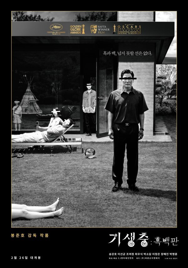 ‘기생충’ 투자배급사 CJ ENM은 “기생충’이 26일부터 흑백판으로 전환상영될 계획이었으나 코로나 위기경보 ‘심각’ 격상에 따라 전환상영을 잠정 연기하기로 하였다”라고 밝혔다.