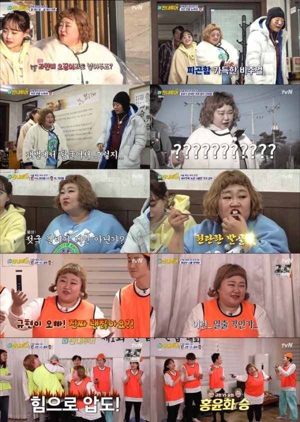 어제(24일) 방송된 tvN ‘더 짠내투어’에서 홍윤화는 규현, 허경환, 츄와 함께 개그 선배 김준호가 설계한 강화도 투어에 나섰다. 이날 홍윤화는 “조개구이를 먹게 해주겠다”는 김준호의 호언장담에 속아 갯벌에 올라 직접 굴 따기 체험에 나섰다.