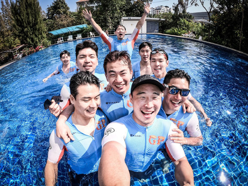 1월 태국 치앙마이에서 동계훈련을 실시한 경륜의 정종진과 김포팀 동료들이 고된 훈련을 마치고 수영장에서 물놀이를 즐기고 있다. 사진제공|김포팀 인치환 선수