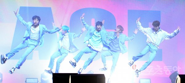 신인 그룹 MCND가 26일 서울 광진구 예스24 라이브홀에서 열린 데뷔 앨범 ‘into the ICE AGE’ 발매 쇼케이스에서 화려한 공연을 펼치고 있다.