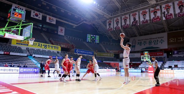 26일 경기도 고양체육관에서 열린 ‘2019-2020 현대모비스 프로농구’ 고양 오리온과 울산 현대모비스의 경기에서 코로나19 여파로 인해 무관중 경기가 펼쳐지고 있다. 고양 | 김민성 기자 marineboy@donga.com