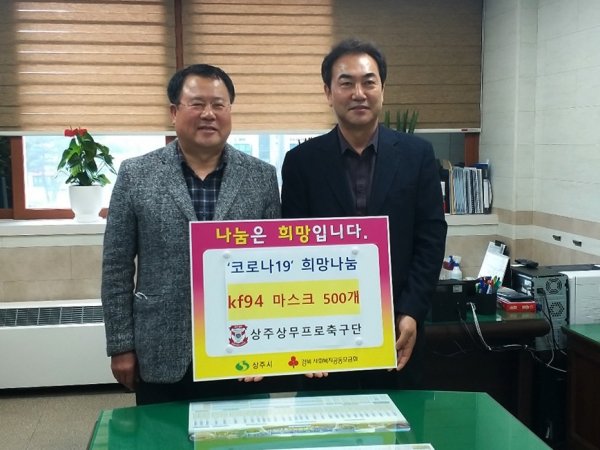 그러나 마스크 수급이 불안정한 상황에서 일반인들은 물론, 재난 취약 계층이 마스크를 구하기에는 역부족이다. 이러한 사태를 돕고자 상주상무프로축구단은 사회복지시설 등 사회적 약자를 위해 KF94 마스크 500개를 기부했다.